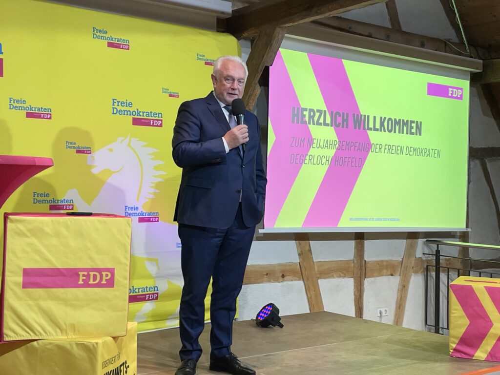 Unter dem Motto „Klartext vor der Wahl“ veranstaltete die FDP-Stadtgruppe Degerloch/Hoffeld ihren Neujahrsempfang. Und wie nie zuvor war die Veranstaltung binnen weniger Tage komplett ausgebucht. Das Interesse an unserem stellv. FDP-Bundesvorsitzenden Wolfgang Kubicki war so groß, dass im Foyer der Alten Scheuer weitere Sitz- und Stehplätze zur Verfügung standen.